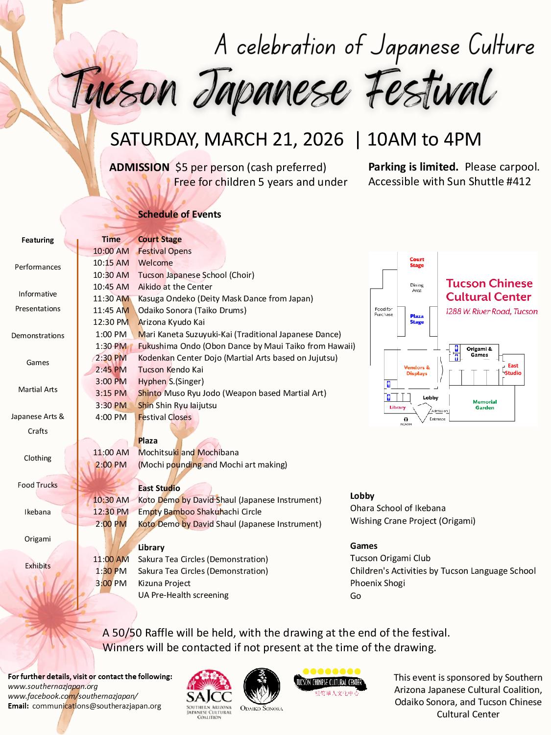 This is our 10th SAJCC sponsored Japanese Festival in Tucson, scheduled for Saturday March 21 at the Tucson Chinese Cultural Center, 1288 W. River Rd.